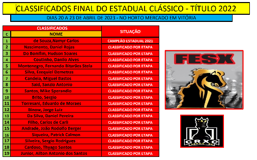 VEJA OS CLASSIFICADOS PARA A FINAL DO ESTADUAL DE XADREZ CLÁSSICO