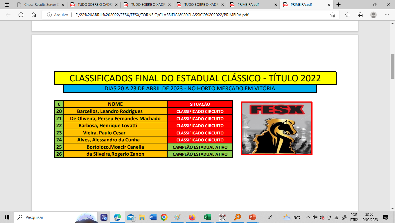 FESX -FEDERAÇÃO ESPIRITOSANTENSE DE XADREZ