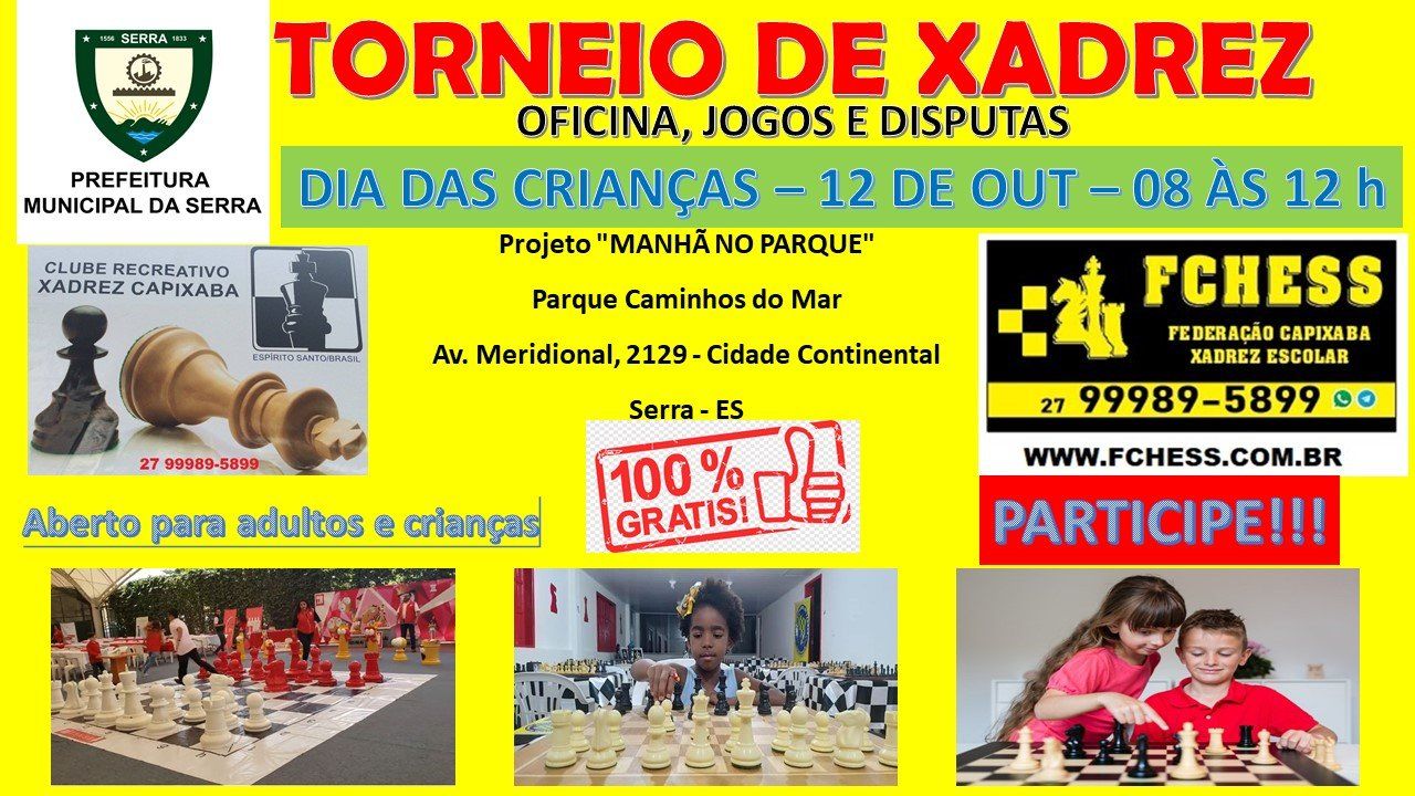 O evento será no CLUBE RECREATIVO XADREZ CAPIXABA na Serra - ES.